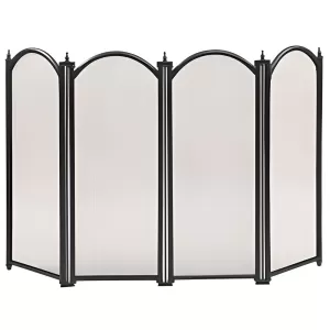 Практически незаменимым аксессуаром любой современной модели камина является защитный экран. Он предотвращает выпадение угольков или прогоревших дров, тем самым уменьшая вероятность возгорания. Одна из главных функций экранов для каминов – это циркуляция воздуха, которая помогает огню в камине гореть равномернее и теплу от огня быстрее распределяться по помещению. Экран помогает камину направить тепло и не растерять его слишком быстро. Данный искро-защитный экран выполнен из металлической сетки с мелкими ячейками.